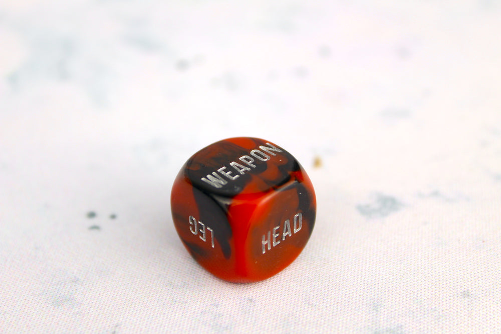 The tremors are increasing, buildings are failing, the earth quakes with unnatural vengeance in the distance and destruction is wanton; embrace Chaos or perish!  Each die is premium hand mixed resin; containing a bloody red and warp tainted black swirled together and inlaid with a once noble, dazzling silver.