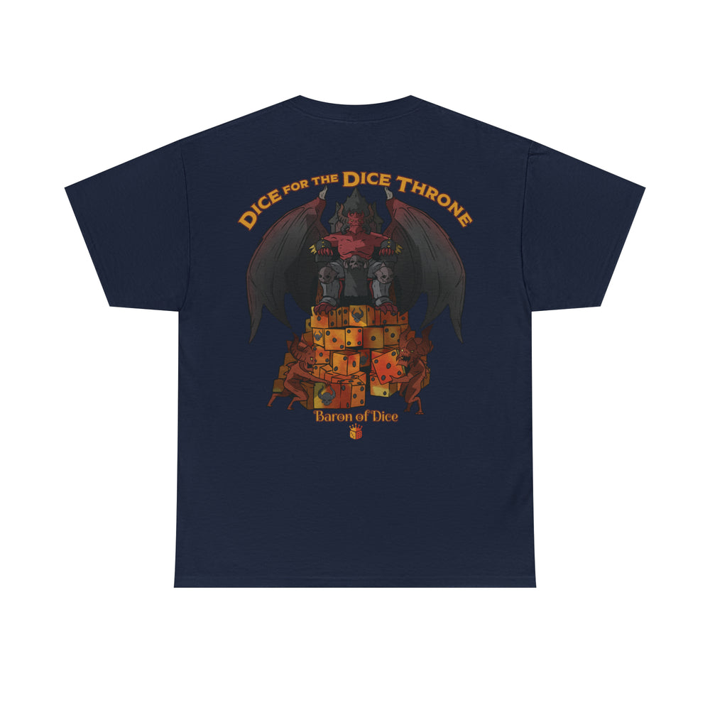 Designs are on the backside of each shirt. Wear the shirt that others will envy, DICE FOR THE DICE THRONE!!!