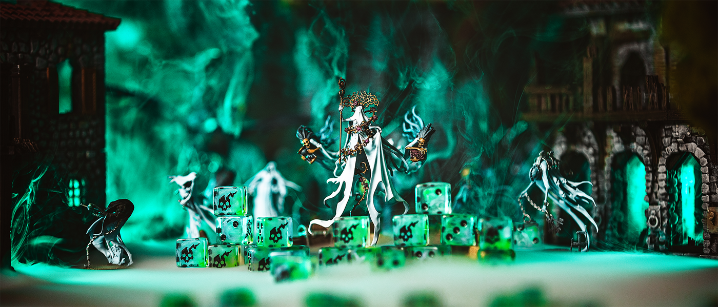 Grim Reaper Ethereal Glow Metal RPG Dice Set - 7 Pieces
