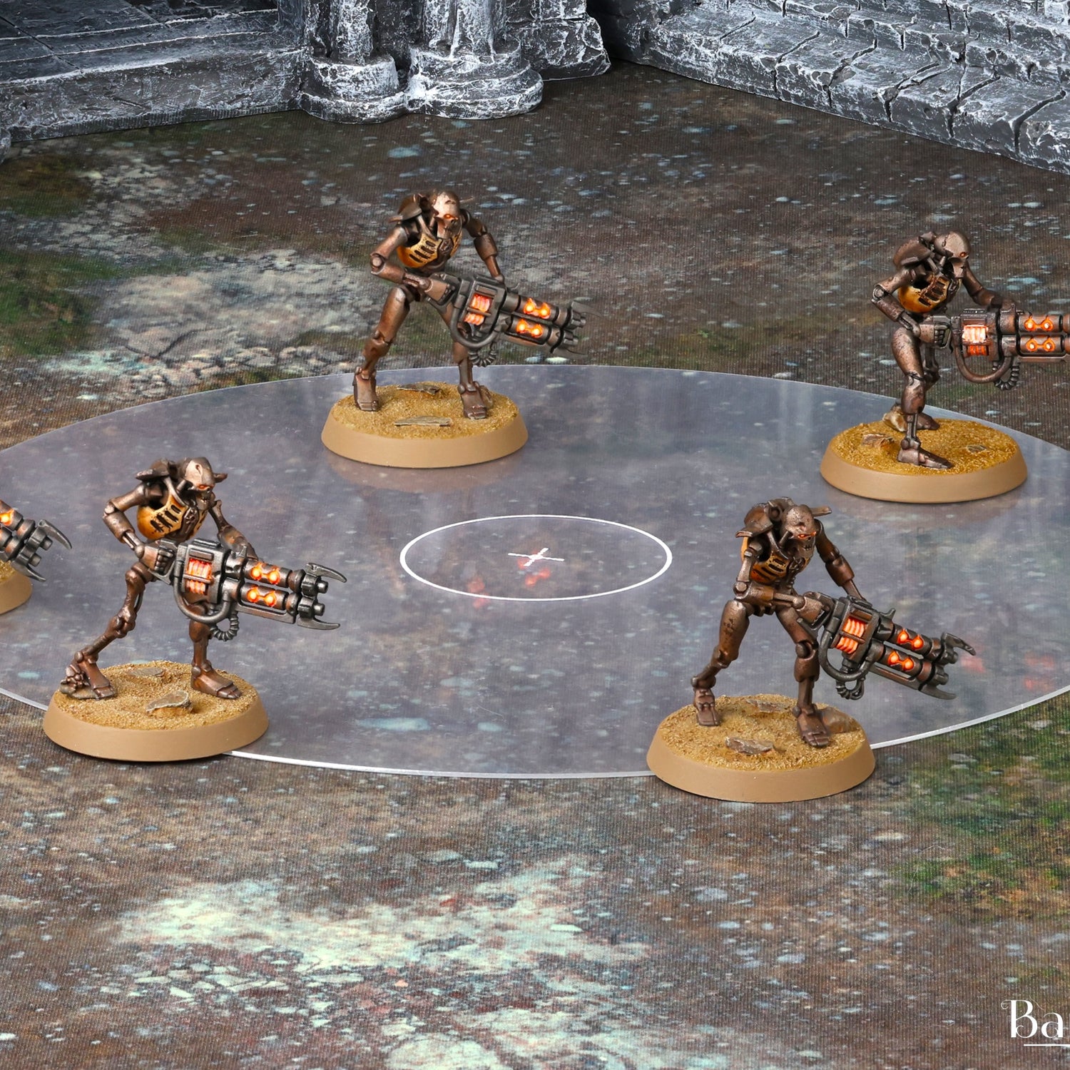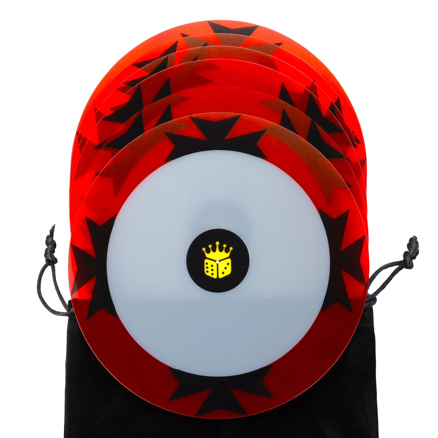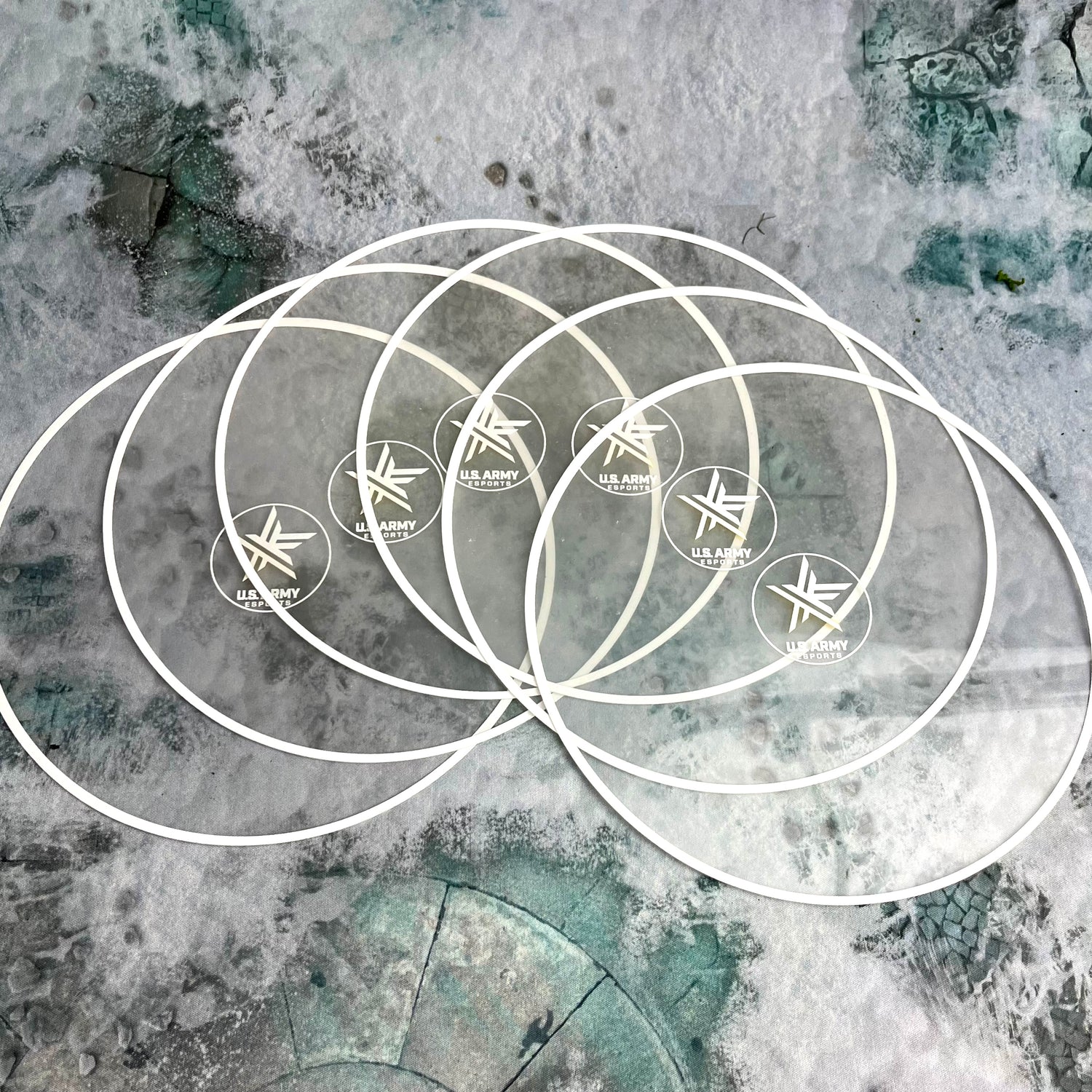 Finally, the perfect objective marker that is compatible with tabletop wargaming. One marker that clearly and concisely shows objectives without disputes. Take your gameplay to the next level, have fun, and spend more time rolling dice instead of measuring! Our markers are a polypropylene resin, 1mm thick with a full color screen print. Additionally, each marker has a protective film on the printed side they will arrive with (please remove this film once they arrive). They are bendable, strong, durable and made to last for years.
