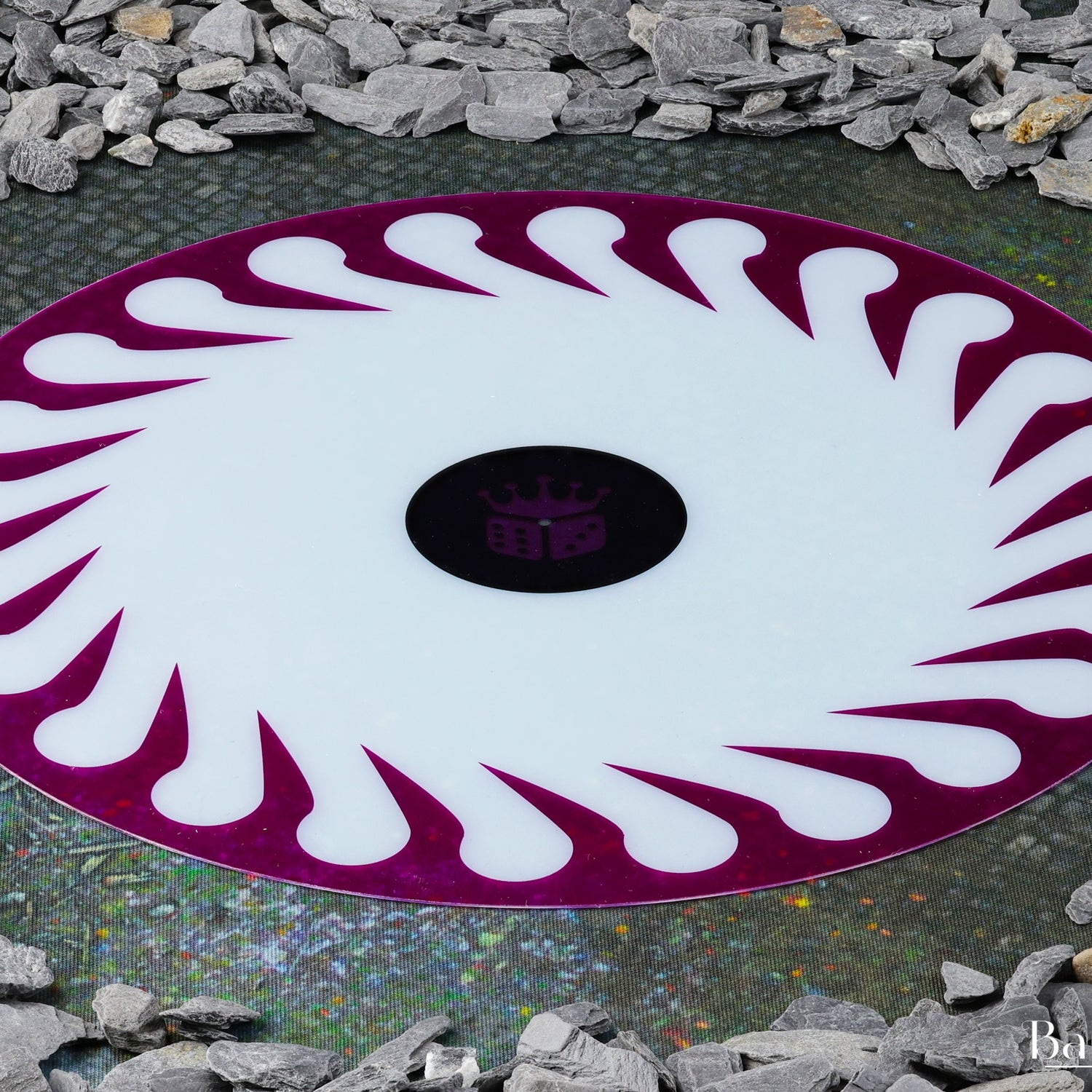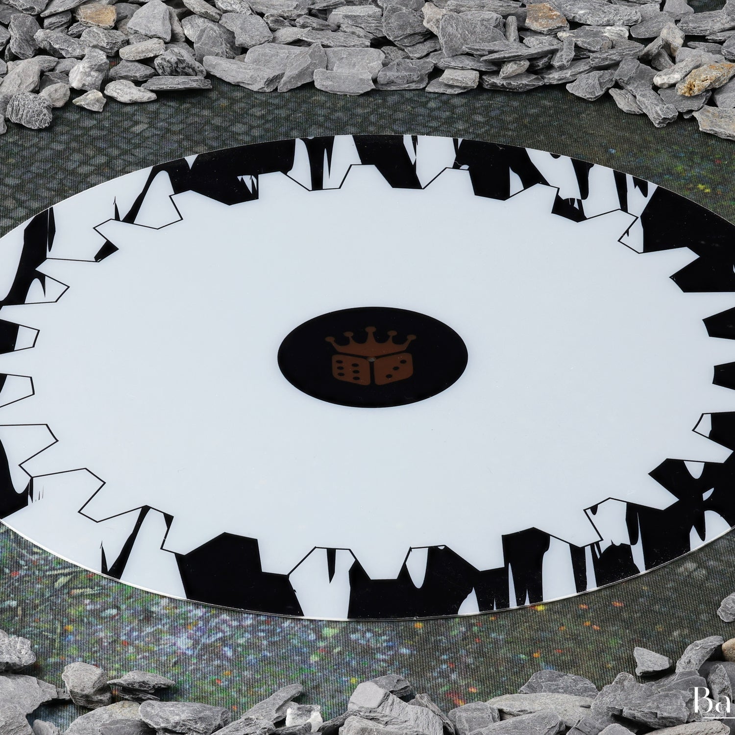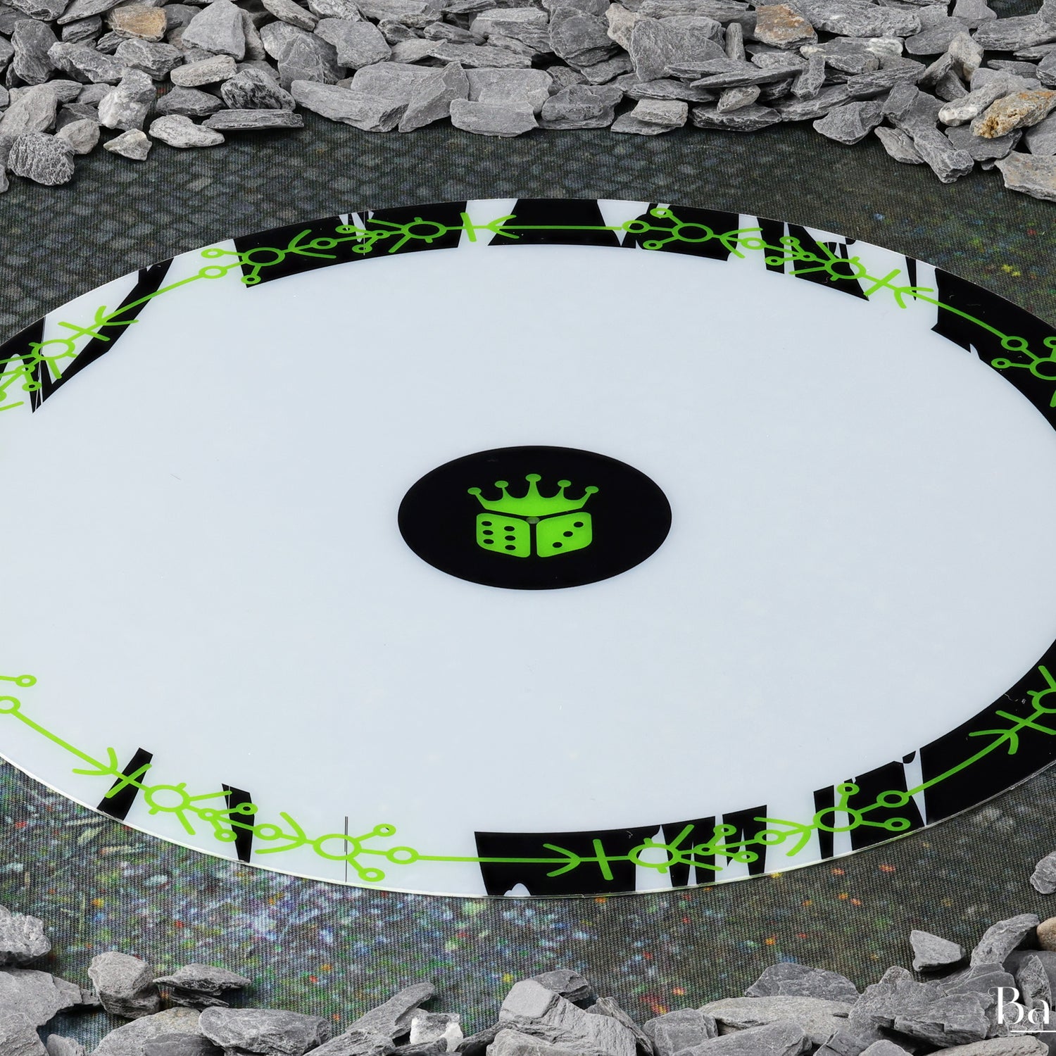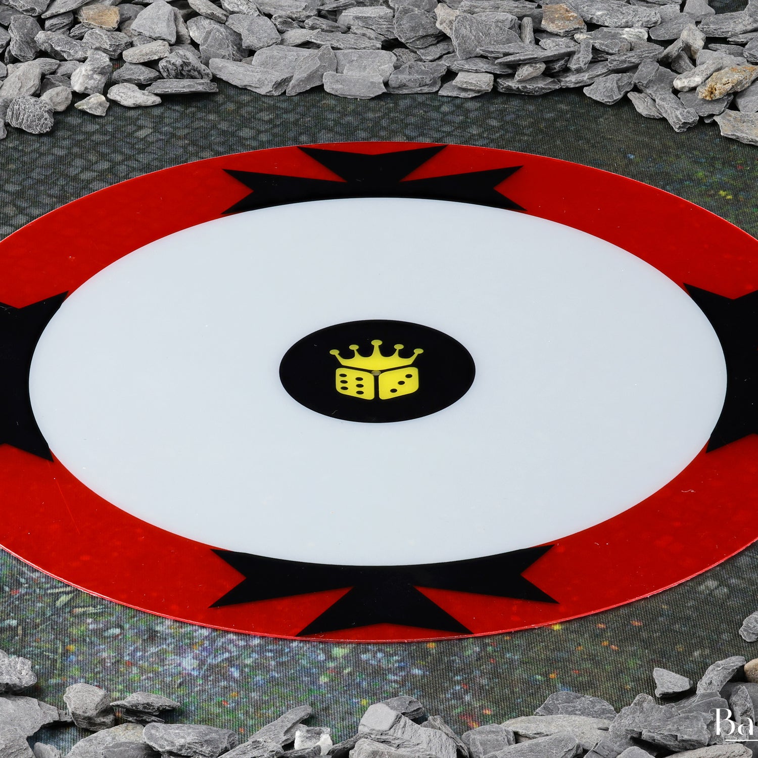Let's discuss measurements! Starting in the center, there is a 1mm translucent circle, this is your "pinpoint" hole for placement on your game table, essential. The circle around the inside measures exactly 40mm to mark an objective token. Outside, the rim is exactly 192.4mm diameter, letting everyone know they have reached the objective. If you touch that line, you are in! Simple, effective, and clear.