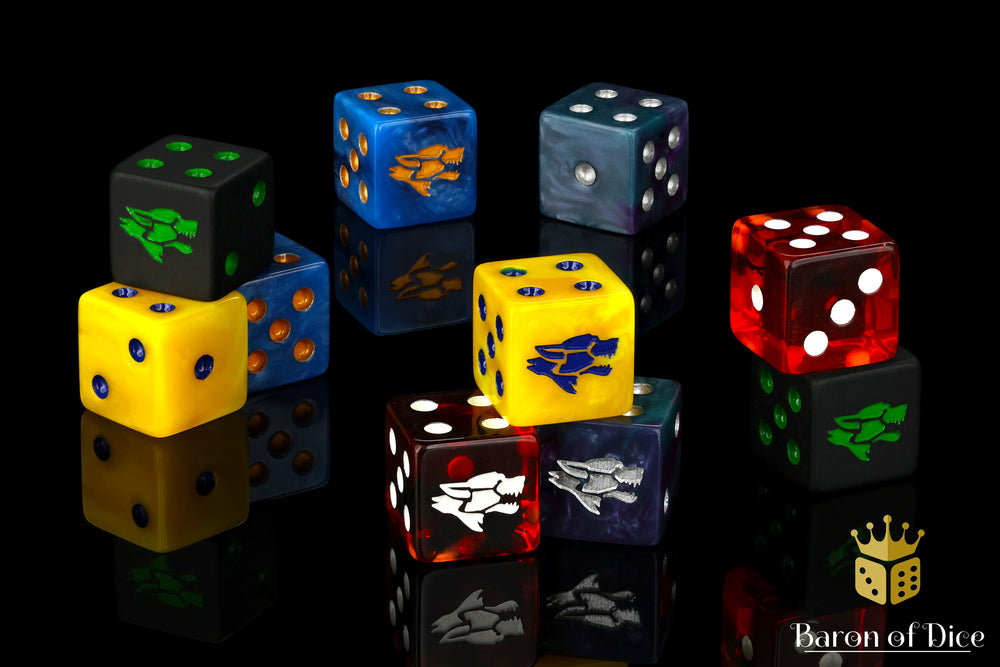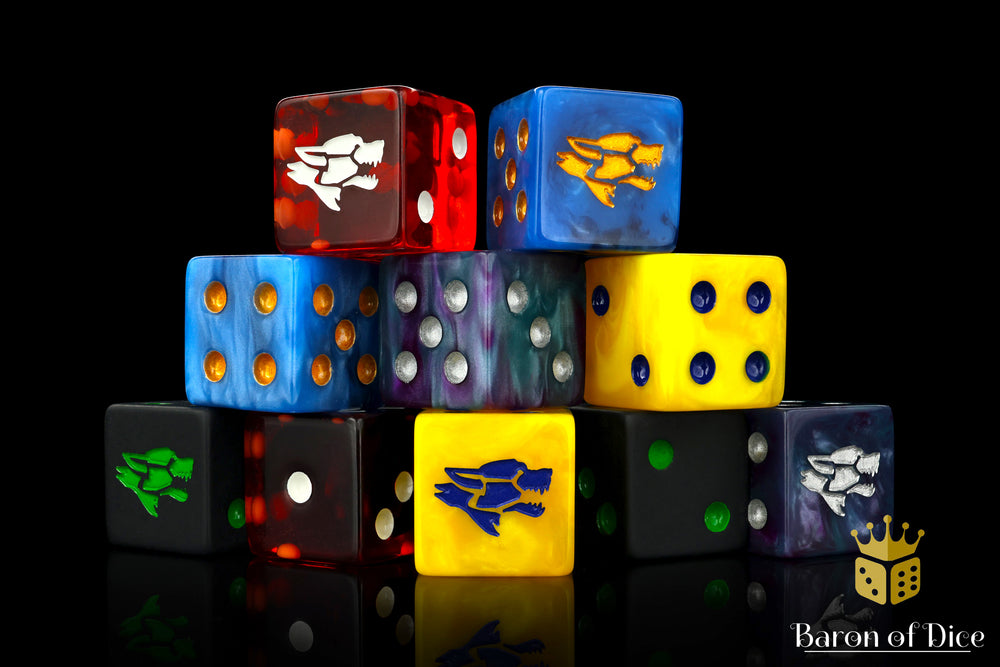 The dice in our Battle Robots collection are Baron of Dice originals. These are in no way affiliated with any other game system or 3rd party.