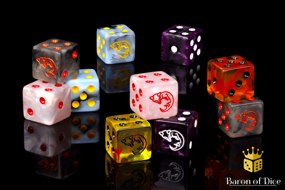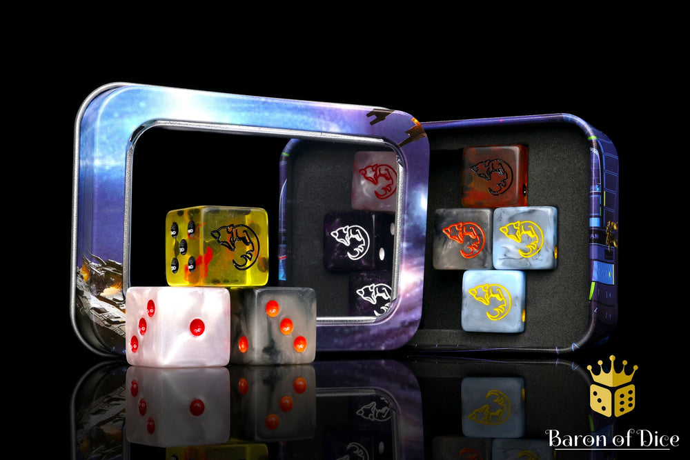 The dice in our Battle Robots collection are Baron of Dice originals. These are in no way affiliated with any other game system or 3rd party.
