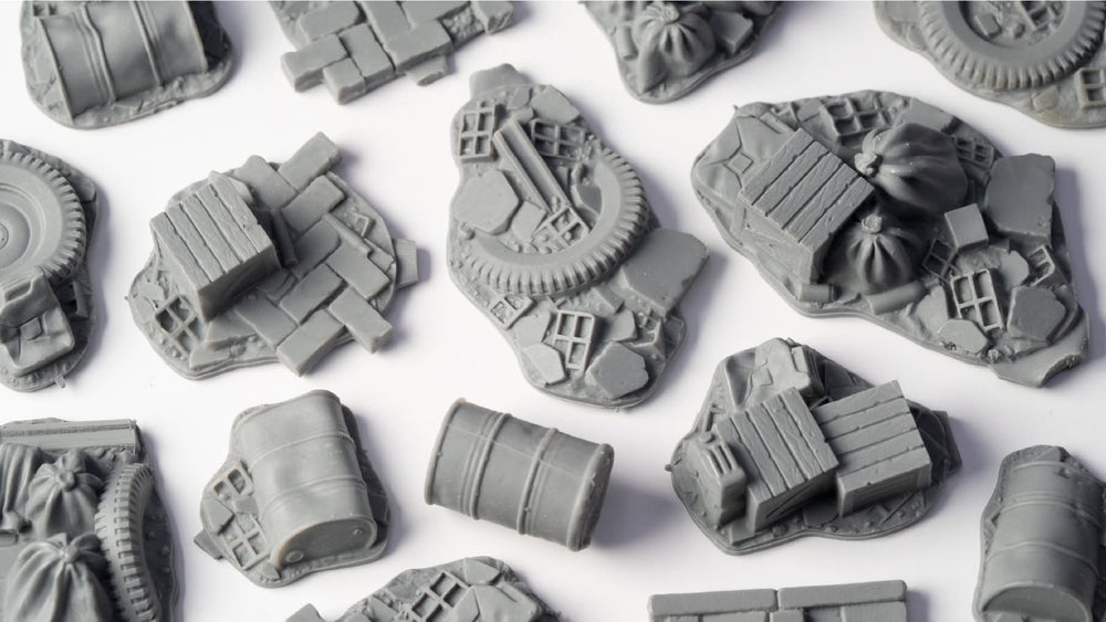 An assorted mix of thermoplastic Urban Warfare Basing Bits. All Basing Bits are sold unpainted.