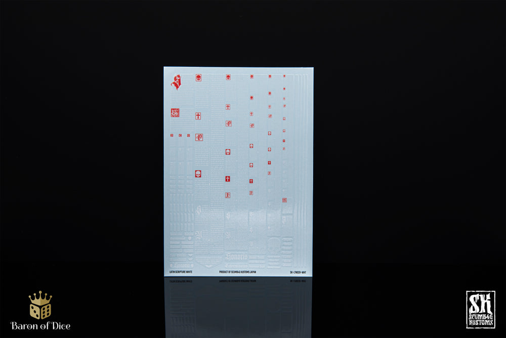 This Latin Scripture waterslide decal sheet is designed specifically for wargaming miniatures and features a selection of Latin text in multiple sizes and widths to suit a wide range of surfaces from infantry to large vehicles.