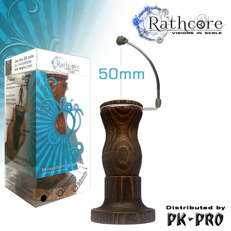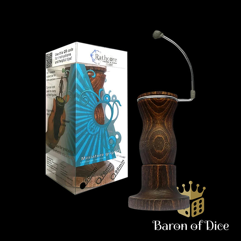 The Grip is a variation of the Holder and maintains all of the basic features of the Holder. Each Grip includes a conical split cork designed to easily attach miniatures that are pre-pinned or still attached to their casting sprue. The cork releases from the Grip using a simple lever action. With its ergonomic shape and smooth processed surface, the V3 Miniature Grip offers a more pleasurable painting, sculpting, or modeling experience. All grip variants are made of beech wood, the light beech has a transparent finishing and the dark walnut and limited one has a colored and natural based protective coat, resistant to sweat with the DIN EN 71-3