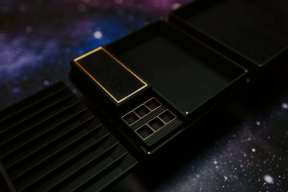 - Spacers: These two pieces hold the magnetic box in place and doubles as dice holders.