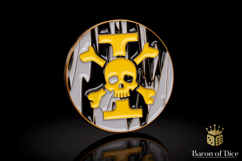 Finally, the perfect objective marker for all tabletop games! One marker that clearly and concisely shows the objective without disputes. Take your gameplay to the next level, have fun, and spend more time rolling dice. Each coin is polished alloy, machine engraved and UV printed with full color, ready to tempt your opponents in any battle!