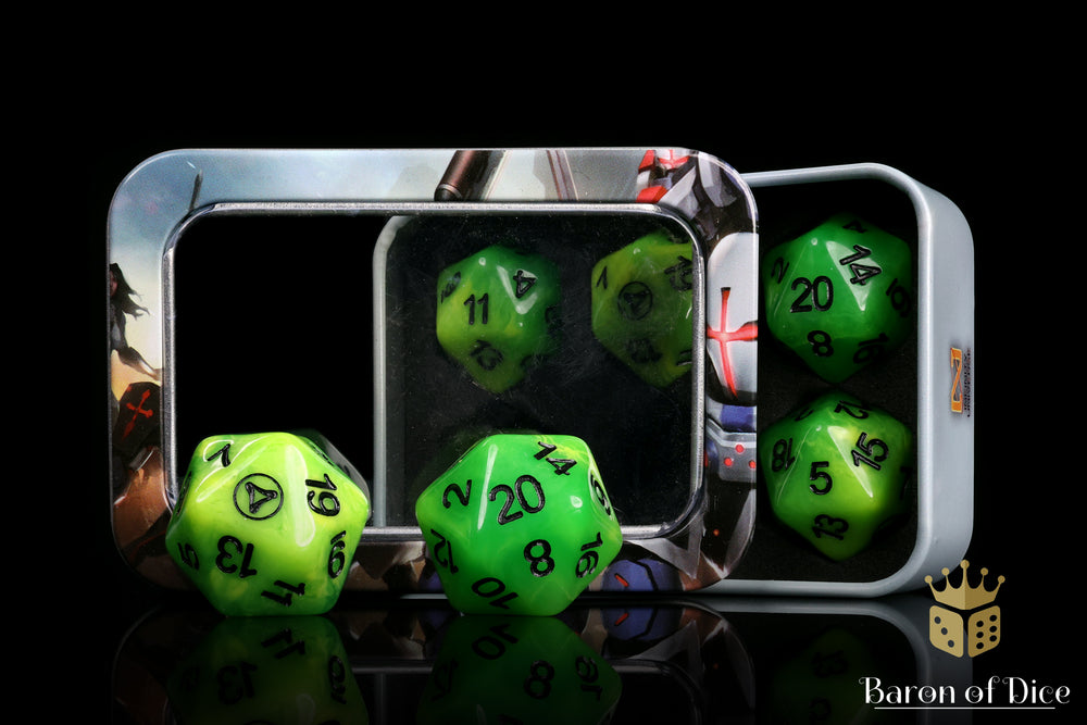 Step into the world of the Tohaa Army with the Infinity Tohaa Official Dice Set! These six oversized D20s are not just dice; they are your gateway to the fierce battles and strategic maneuvers. Each 22mm die is meticulously crafted from premium resin, with ethereal green and glow in the dark swirls, revealing pure black symbols. When you roll these dice, you’re not just playing a game—you’re channeling the spirit of dice themselves, with every outcome steeped in the rich lore of the Tohaa's relentless pursuit of freedom and honor.